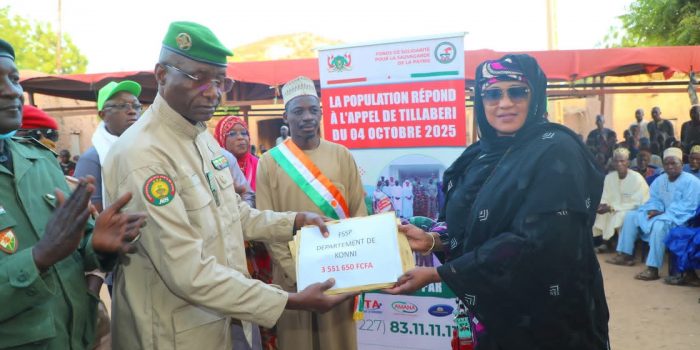 Ce samedi 06 décembre 2025, après l’étape de Doutchi, la Présidente du Comité de gestion du FSSP et sa délégation ont été accueillies par la population de la commune rurale de Dibissou, département de Konni.Reçue par le Préfet, l’AD, les autorités administratives et coutumières, la Présidente du FSSP a salué la forte mobilisation des communautés.👉 Montant remis : 5 000 000 FCFALa contribution a été officiellement remise à la Présidente par le Préfet de Konni.Un geste patriotique qui témoigne de l’engagement constant des populations de Konni aux côtés du FSSP.Ensemble pour la Patrie !