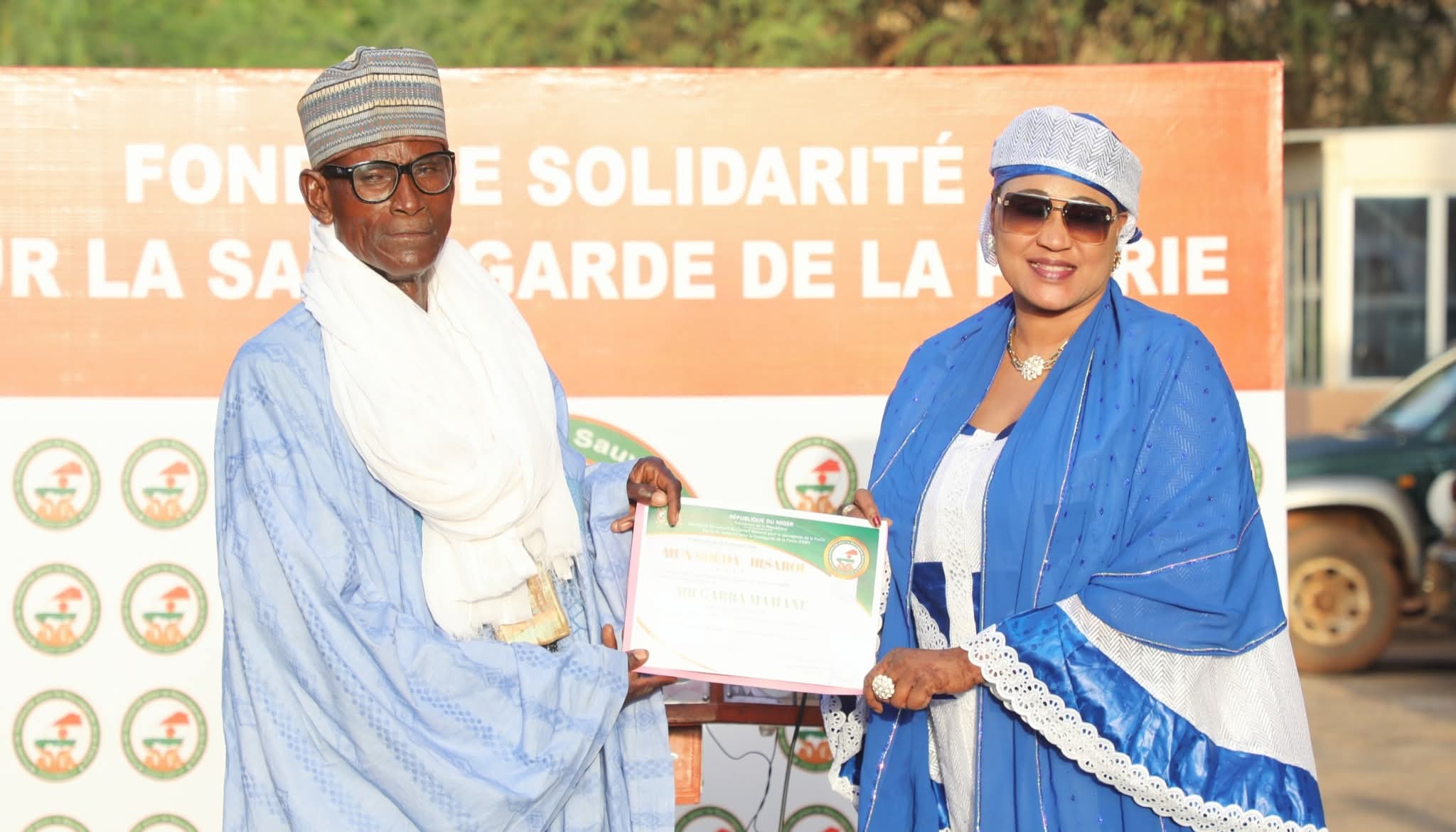 Niamey, le 16 octobre 2025– FSSPSous le signe de la reconnaissance et de la solidarité nationale, le Fonds de Solidarité pour la Sauvegarde de la Patrie (FSSP) a organisé une soirée d’hommage intitulée « Mun Cheda Iri Sabou », littéralement « Témoignage de reconnaissance », afin de distinguer des femmes et des hommes dont l’engagement constant incarne le véritable esprit patriotique.Placée sous la présidence de Madame Reki Moussa Hassane Djermakoye, Présidente du Comité de Gestion du FSSP, cette cérémonie sobre et empreinte d’émotion a réuni membres du Comité, récipiendaires, amis de la presse et invités, autour d’un même idéal : honorer la fidélité et la constance dans l’acte patriotique.Le moment fort de la soirée fut la remise officielle des Témoignages “Mun Cheda Iri Sabou”, symboles de gratitude nationale envers des contributeurs exemplaires du FSSP.Parmi eux, le Caporal à la retraite Garba Mamane, domicilié à Djambala, a ému l’assistance. Depuis plusieurs mois, il quitte chaque vendredi son village pour venir apporter sa contribution au FSSP, fidèle à son engagement de verser un million de francs CFA. Un parcours de constance et de dévouement qui a suscité une salve d’applaudissements.La diaspora nigérienne au Togo a également été honorée pour sa générosité et sa fidélité, étant à ce jour la première et à ce jour là plus importante contributrice au titre des Nigériens de l’extérieur.- Autre figure remarquable, M. Obi Jean Paul, citoyen nigérian résidant à Niamey, réparateur et vendeur d’accessoires de téléphones portables, a tenu sa promesse d’apporter régulièrement sa contribution au FSSP jusqu’à la levée des sanctions imposées au Niger. Un geste de solidarité fraternelle salué par tous.Le FSSP a également distingué :M. Mohammed Ali Abdoulkarim,Conseiller à la Présidence, pour la cession volontaire de la totalité de ses indemnités ;Honorable Elhadj Amadou Maraya, Conseiller au Conseil Consultatif de la Refondation, pour le même geste patriotique ;M. Abdouramane Boubacar Idrissa, enseignant contractuel, qui a pris l’engagement de céder chaque mois, une partie de son salaire au Fonds ;Le Syndicat des Pharmaciens et Chirurgiens-Dentistes (SYNPHAMED) section de Tillabéri, pour leur solidarité professionnelle exemplaire et citoyenne ;Le Chef du village de Koné Béri, pour son leadership communautaire dans la mobilisation en faveur du FSSP ;Le Groupe de presse Fidélité, salué pour son accompagnement constant et sa contribution médiatique à travers la couverture gratuite dès activités du FSSP. Et enfin, l’entreprise I-FUTUR qui a gracieusement mis à la disposition du FSSP la plateforme digitale WWW. FSSP.ne et son accompagnement dans la maintenance de la plateforme.En remettant ces distinctions , la Présidente du Comité de Gestion du FSSP a exprimé, au nom du peuple nigérien, toute la reconnaissance de la Nation à ces récipiendaires Cette cérémonie « Mun Cheda Iri Sabou » s’inscrit dans la continuité des actions du FSSP visant à valoriser les contributions citoyennes, renforcer la cohésion nationale et rappeler que la défense de la Patrie est une responsabilité partagée.
