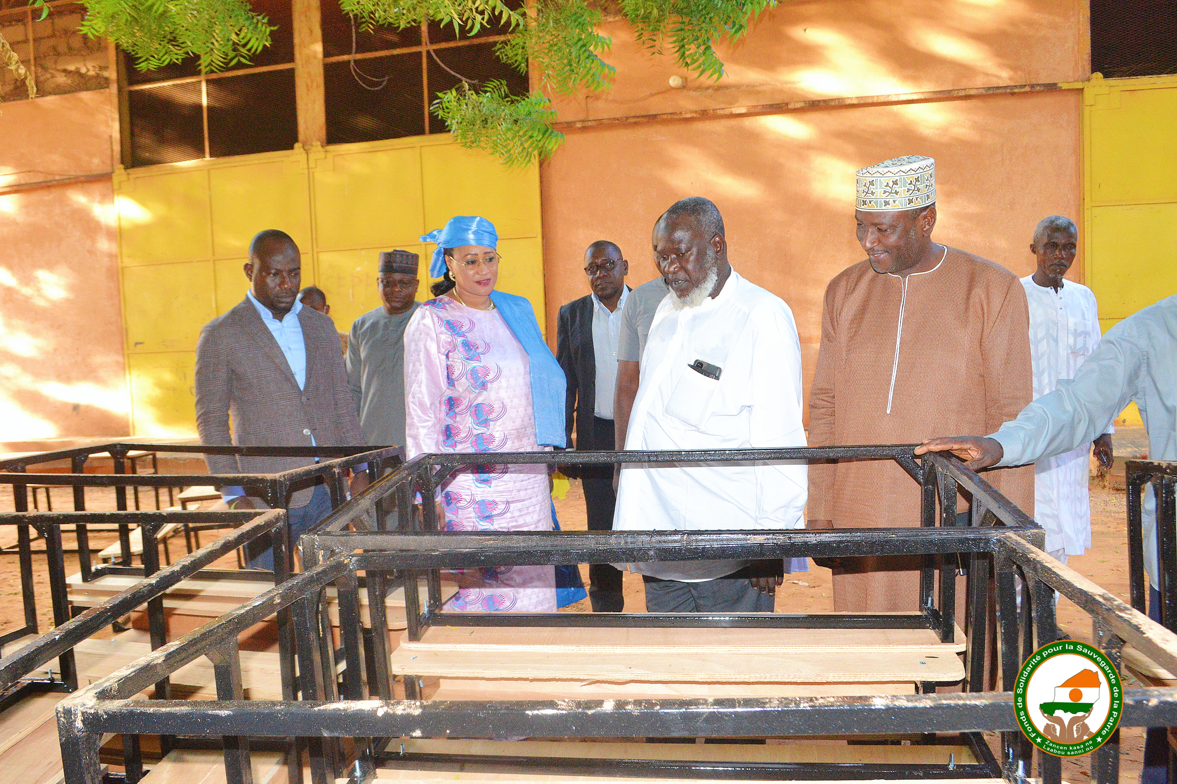 Niamey, le 5 septembre 2024 – Ce jeudi après-midi, la Présidente du Comité de Gestion du Fonds de Solidarité pour la Sauvegarde de la Patrie (FSSP), accompagnée des autres membres du comité, a effectué une visite inopinée au Centre de Formation Professionnelle (CFPP). L’objectif de cette visite était de s’enquérir du niveau d’avancement des activités de récupération de tables-bancs, un volet clé du projet ILMI DA NASIHA initié par l’Union des Scolaires Nigériens (USN).