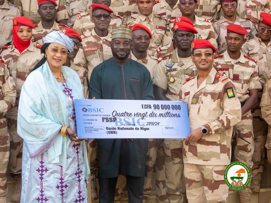 Niamey, 27 novembre 2024 – Dans une cérémonie marquée par un profond sens de patriotisme et de solidarité nationale, la Garde Nationale du Niger (GNN), sous la direction de son Haut Commandant, le Colonel-Major Ahmed Sidian, a une nouvelle fois affirmé son soutien au Fonds de Solidarité pour la Sauvegarde de la Patrie (FSSP).
