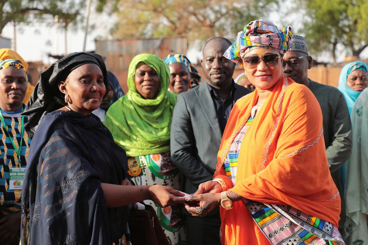 Niamey, 13 mai 2025 – FSSP – À l’occasion de la Journée nationale de la femme, la Présidente du Fonds de Solidarité pour la Sauvegarde de la Patrie (FSSP), Mme Reki Moussa Hassane Djermakoye, épouse Brah Ali, a pris part ce mardi 13 mai à la cérémonie officielle de lancement des activités de la Fédération « AKORI MASSALA » des femmes du quartier Aéroport de Niamey. Elle était accompagnée des membres du Comité de gestion du Fonds.