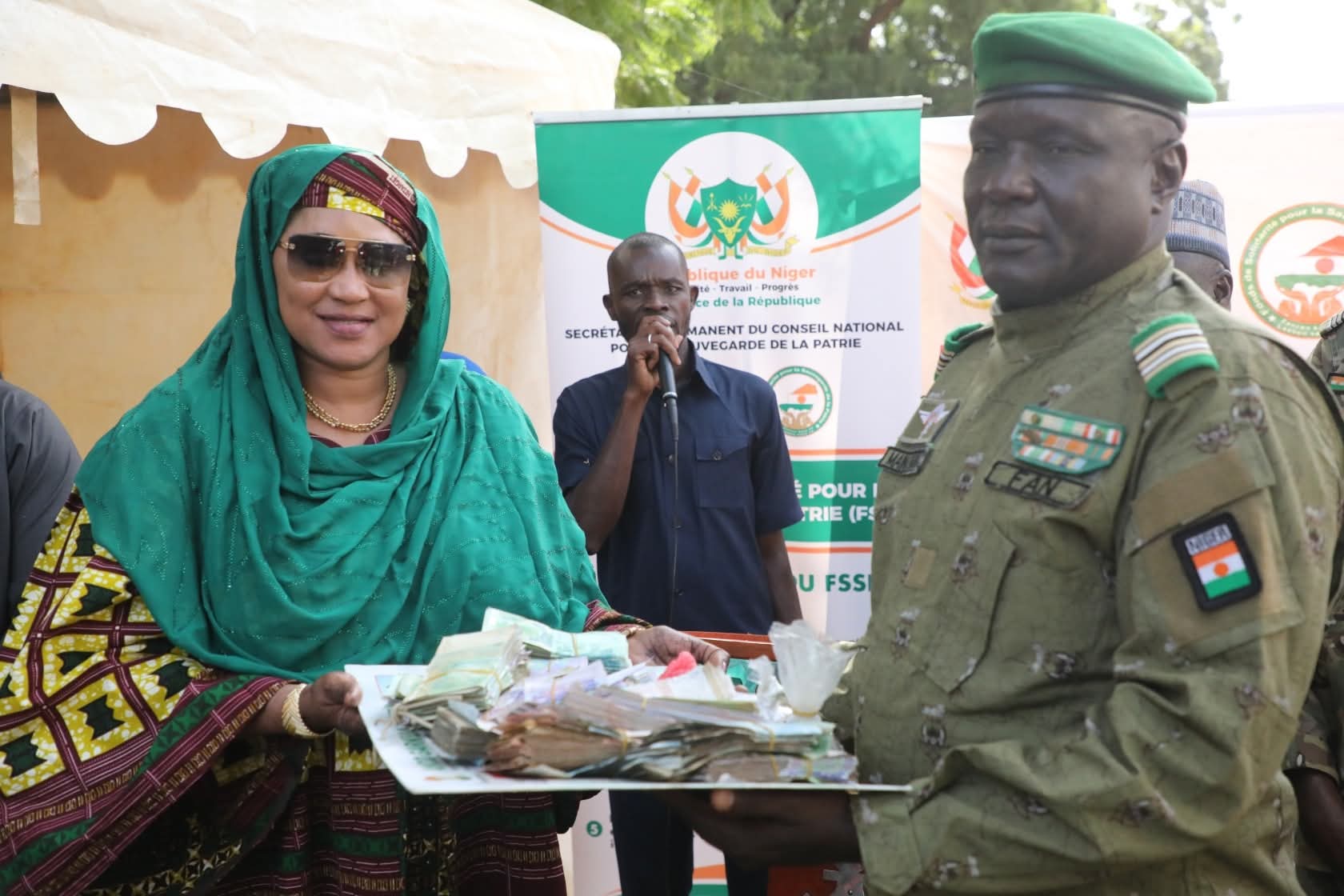 Le vendredi 7 novembre 2025, la population du canton de Tazagar, dans la région de Tillabéri, a une fois de plus démontré son attachement à la Nation et son engagement aux côtés des autorités de la Transition. En réponse à l’appel de Tillabéri du 4 octobre 2025, une cérémonie solennelle de remise de contribution au Fonds de Solidarité pour la Sauvegarde de la Patrie (FSSP) s’est tenue sous le haut patronage du Gouverneur de la région de Tillabéri, en présence du Préfet de Ballayara et de ses plus proches collaborateurs.Invitée pour la circonstance, Madame Réki Moussa Hassane DJERMAKOYE, Présidente du Comité de gestion du FSSP, a personnellement réceptionné la contribution de la population, d’un montant global de 13.000.000 FCFA. Elle était accompagnée du Chargé de Communication Adjoint du Comité de gestion du FSSP.Dans son allocution, la Présidente du FSSP a salué le patriotisme exemplaire des habitants du canton de Tazagar, avant de rappeler que ces contributions volontaires viennent renforcer les efforts nationaux de solidarité destinés à soutenir la défense du territoire et la résilience des populations.Elle a également réitéré la transparence et la rigueur qui guident la gestion du Fonds, précisant que chaque contribution, quelle que soit son importance, constitue une pierre précieuse à l’édifice de la sauvegarde de la patrie.De leur côté, les autorités locales ont exprimé leur fierté de constater la mobilisation massive de la population autour de cet élan national de solidarité, symbole d’unité et de cohésion.Zantchan kassa Labou sanni !