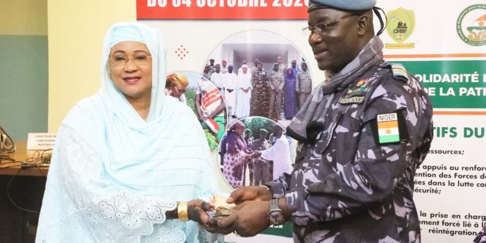 Niamey, le 28 novembre 2025 – FSSP –La Présidente du Comité de Gestion du FSSP, Mme Reki Moussa Hassane Djermakoye, a pris part ce matin à la cérémonie d’ouverture des travaux de la réunion de coordination des Chefs des Centres de Pesage et de Péage du FER.En marge de cette cérémonie, une collecte spontanée d’un montant de 1 533 550 F CFA a été réalisée en réponse à l’appel du Président de la République, Chef de l’État, et remise à la Présidente du Comité de Gestion.À cette occasion, la direction du FER a également procédé à la remise d’un chèque de 2 300 580 F CFA, représentant les prélèvements effectués sur les tickets de péage routier pour le mois d’octobre, entièrement pris en charge par le FER.