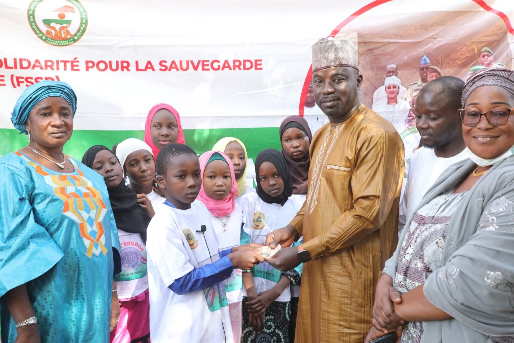 Niamey, le 13 novembre 2025 – FSSPLa flamme du patriotisme continue de grandir au sein de la jeunesse nigérienne. En réponse à l’appel historique de Tillabéri lancé par le Président de la République, Chef de l’État, le Général d’Armée Abdourahamane Tiani, les élèves des écoles relevant de l’Inspection Niamey 13 ont, à leur tour, apporté leur contribution au Fonds de Solidarité pour la Sauvegarde de la Patrie (FSSP).Réunis dans la cour de l’École Talladjé 2, ces jeunes patriotes ont remis une somme totale de 337 200 F CFA destinée à soutenir l’effort de guerre et à témoigner de leur engagement envers la Nation.La cérémonie officielle de réception s’est déroulée en présence du Vice-président du Comité de Gestion du FSSP, M. Brah Amadou, de plusieurs responsables scolaires, des parents d’élèves ainsi que de nombreux invités.Dans son mot de bienvenue, la Directrice de l’École Talladjé 2 a salué la mobilisation exemplaire des élèves et enseignants de l’Inspection Niamey 13, tout en réaffirmant l’importance de cultiver dès le jeune âge les valeurs de solidarité et d’amour de la Patrie.Le représentant des parents d’élèves a, quant à lui, félicité cette initiative qu’il a qualifiée d’« acte de maturité citoyenne », témoignant de l’éducation patriotique que reçoivent les enfants.Prenant la parole au nom de ses camarades, le représentant des élèves a exprimé leur fierté d’apporter leur pierre à l’édifice national .Intervenant à son tour, la Chargée de communication du FSSP, Mme Amina Niandou, a magnifié le geste des élèves des écoles de l’Inspection Niamey 13, soulignant toute la portée symbolique de cette action : « Au-delà du montant, il faut voir en cette initiative une véritable leçon de patriotisme. Ces jeunes apprennent dès aujourd’hui à aimer leur pays, à comprendre le sens du sacrifice et de la solidarité. Ils sont les acteurs du Niger refondé que nous construisons ensemble. »Par cette action, les écoles de l’Inspection Niamey 13 viennent ainsi inscrire leurs noms dans le grand livre de la solidarité nationale, confirmant que l’amour de la Patrie n’a pas d’âge.