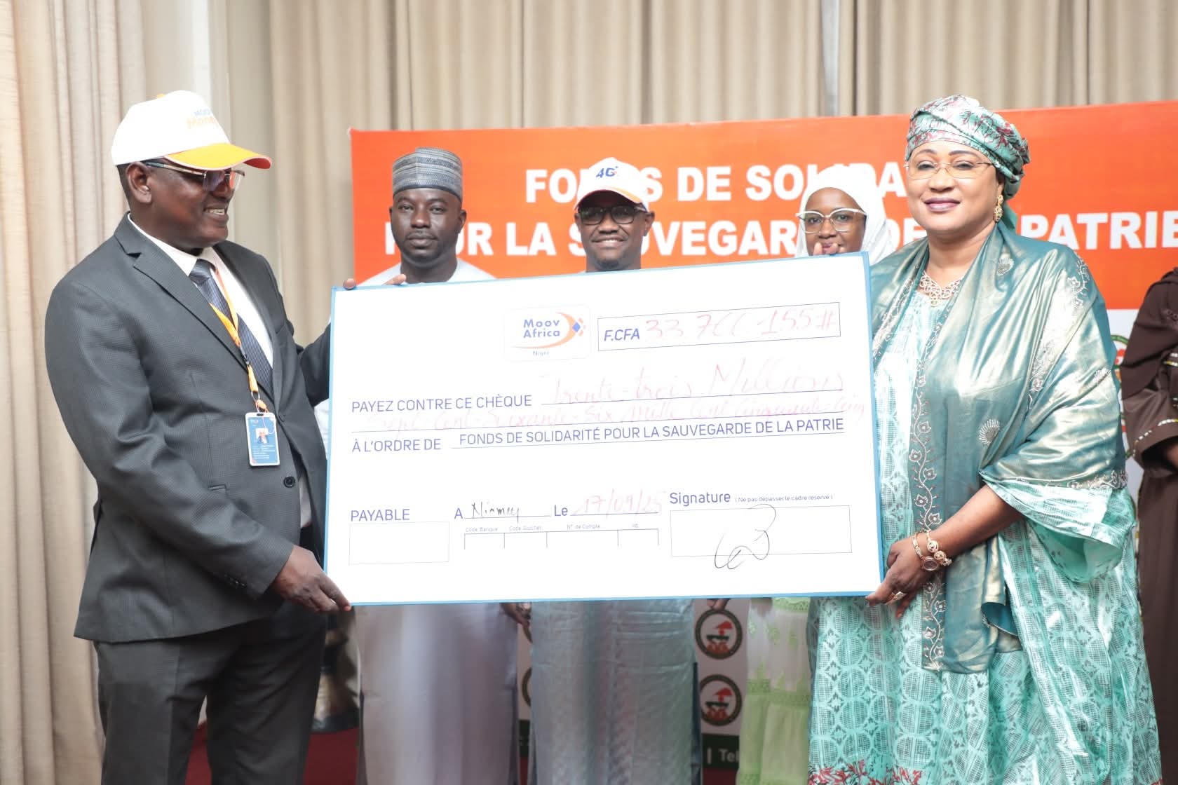 Réception des contributions au FSSP Niamey, le 17 septembre 2025- FSSP-La Présidente du Comité de Gestion du FSSP, Mme Reki Moussa Hassane Djermakoye a réceptionné ce mercredi matin plusieurs contributions émanant des bonnes volontés.Il s’agit des contributions de : – Moov-Niger au titre des prélèvements de 10 f CFA sur chaque souscription aux forfait internet et voix des abonnés, pour le compte du mois d’août soit un montant de 33 766 155 f CFA – La SONIDEP au titre des prélèvements sur certaines rubriques de la structure des prix des hydrocarbures pour le compte du mois d’août. Soit la somme de 308 501 010 FCFA – – Groupement Rahama du quartier Koira-tégui, 10 000 f CFA – Groupement Scout- Kolongou du quartier Koira-tégui, 10 000 f CFA – Mme Fati Moussa, 1 000 f CFA – Groupement Bon ka Tibi du quartier Djeddah , 10 000 f CFA – L’Association des Communicateurs Nigeriens vivant en Côte d’Ivoire, 20 000 f CFA – La Cantatrice Ayyou Chaibou, , 2 000 f CFAContribuez, vous aussi, à la sauvegarde de la patrie.Chaque geste est un message de fierté et de solidarité envers nos Forces de Défense et de Sécurité.