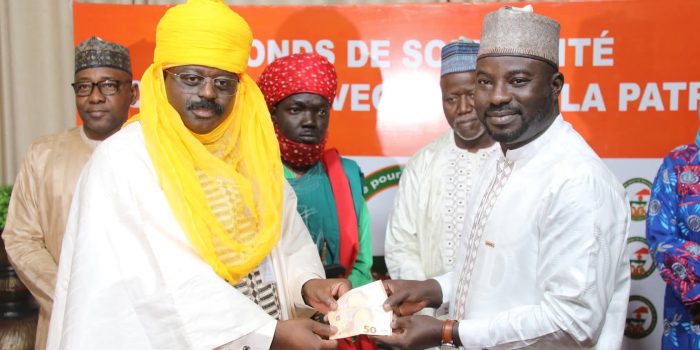 Niamey, le 5 Janvier 2026- FSSP – Ce lundi matin plusieurs contributions émanant des bonnes volontés en réponse à l’appel du Président de la République, Chef de l’État ont été reçues au siège du FSSP.Des contributions réceptionnées par le Vice-président du Comité de Gestion du FSSP, M. Brah Amadou.Il s’agit des contributions de : – HONORABLE OUMAROU KABIROU, membre du CCR 1 tonne de Riz du Niger d’une valeur de 390 000 FCFA ;- JONAS OUMAROU KABIROU : 100 euros soit 65 500 FCFA ;- GROUPE WHATSAPP DES PATRIOTES DU MONDE ENTIER (AY NEHA FOYANDO) : 205 000 FCFA ;- PERSONNEL RINI (RIZ DU NIGER) : 173 000 FCFA ;- MAI DANDA COUTURE : 100 000 FCFA et une contribution en nature de 1000 drapeaux de tenues militaires d’une valeur de 500 000 FCFA.